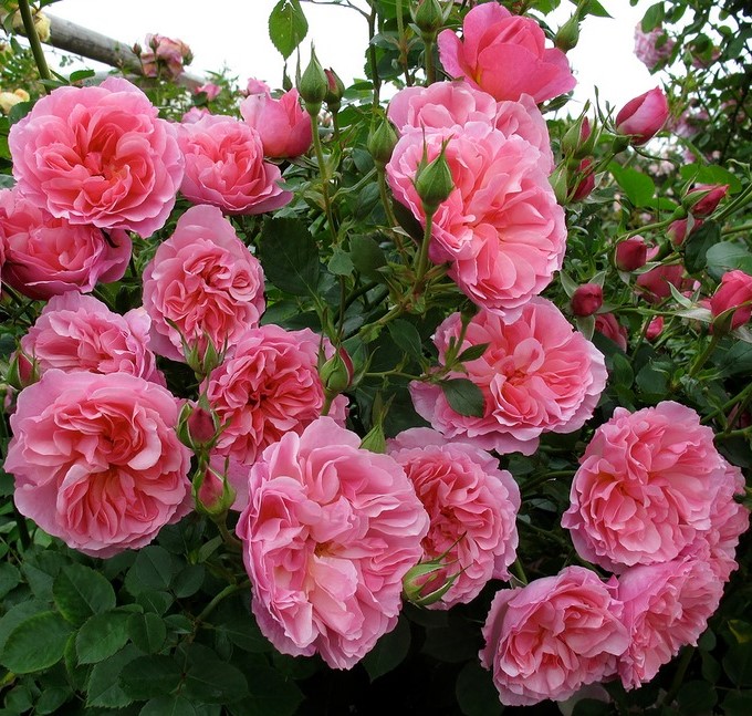Boscobel (David Austin, 2012) Описание сорта: Роза Боскобель (Boscousin) — это, прежде всего, изумительные сильно махровые цветы правильной круглой формы. Цвет можно охарактеризовать как коралловый с красным подтоном. Лепестки одинаковой формы, их количество в одном бутоне может достигать 78 шт. При полном раскрытии бутона можно увидеть желтую серединку. Как и многие кустовые розы, Боскобель образует эффектные грозди из 3-5 соцветий. Высота куста довольно внушительная и может достигать 1,2-1,4 м. Сильные гибкие стебли формируют раскидистый вертикальный куст, ширина которого обычно не превышает 1 м. Небольшие шипы равномерно распределяются по всем стеблям и веткам. Имеет невероятно приятный запах с фруктовыми нотками. * У сорта очень долгий период цветения. Куст покрыт бутонами с весны до заморозков. Почему именно Английские розы: Английские розы — группа сортов роз созданных в последней четверти ХХ века английским селекционером Дэвидом Остином. Большая часть сортов относится к классу Шрабы. Английские розы отличаются от остальных современных сортов формой цветка и строением куста. Они сочетают в себе преимущества старинных сортов роз (чашевидную форму цветков, гармоничную форму куста, разнообразие ароматов цветков) с устойчивостью к болезням, разнообразием оттенков и хорошо выраженным повторным или непрерывным цветением присущим современным сортам чайно-гибридных роз и роз класса флорибунда. В группе присутствуют сорта с различным типом роста куста. Они могут быть низкие, средние, высокие, плетистые, распростёртые, густые, разреженные. При этом в разных климатических зонах одни и те же сорта могут демонстрировать различные особенности. Многие сорта отличаются теневыносливостью, что обусловлено английским климатом отличающимся малым количеством солнечных дней и использованием теневыносливых сортов в программе разведения.